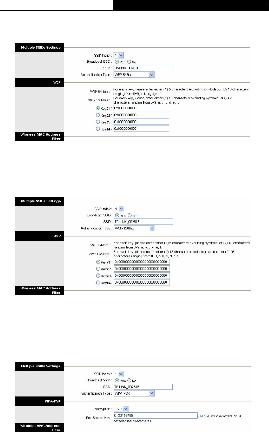 menu will change to offer the appropriate settings. WPA-64Bits is a data privacy mechanism