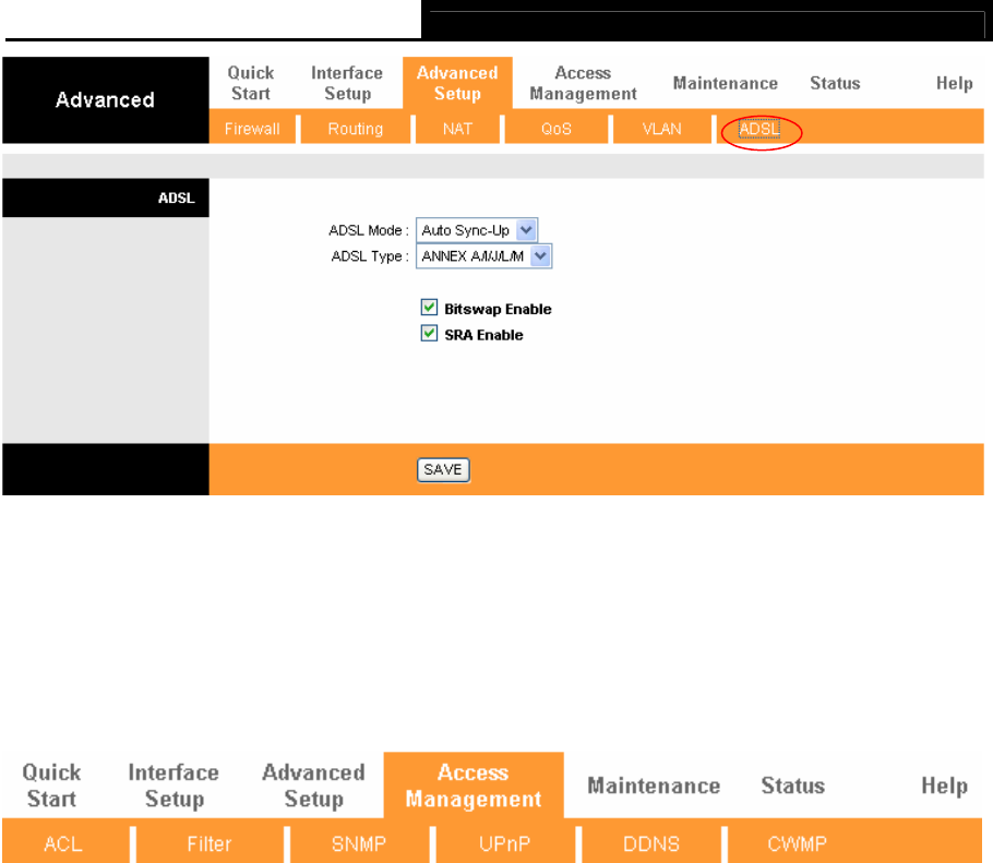¾ ADSL Mode: Select the ADSL operation mode which your ADSL connection uses.