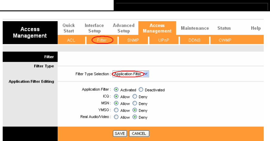 you select Allow, the Router will accept the application; if you select Deny, the Router will
