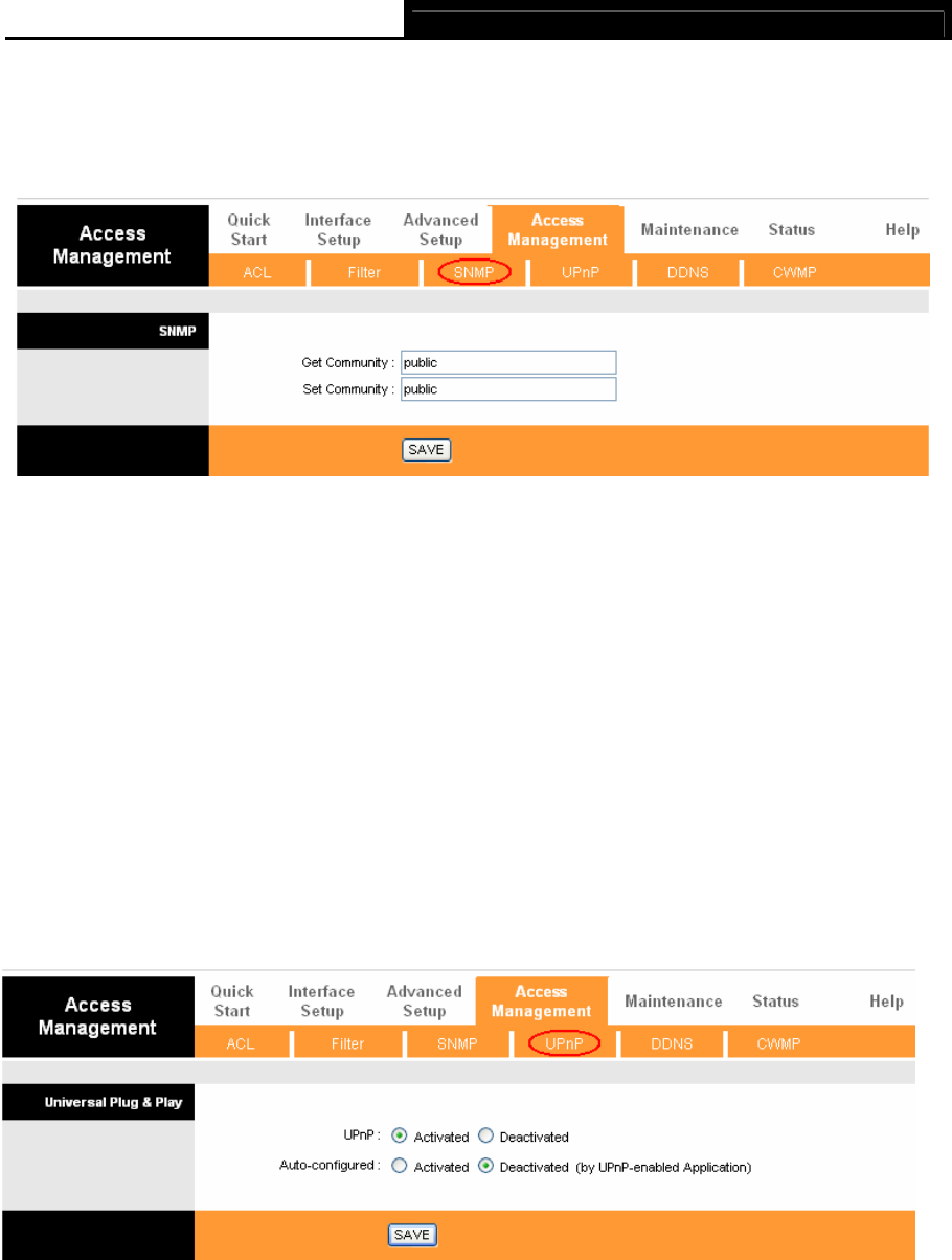 Choose “Access Management→SNMP”, you can see the SNMP screen. The Simple Network