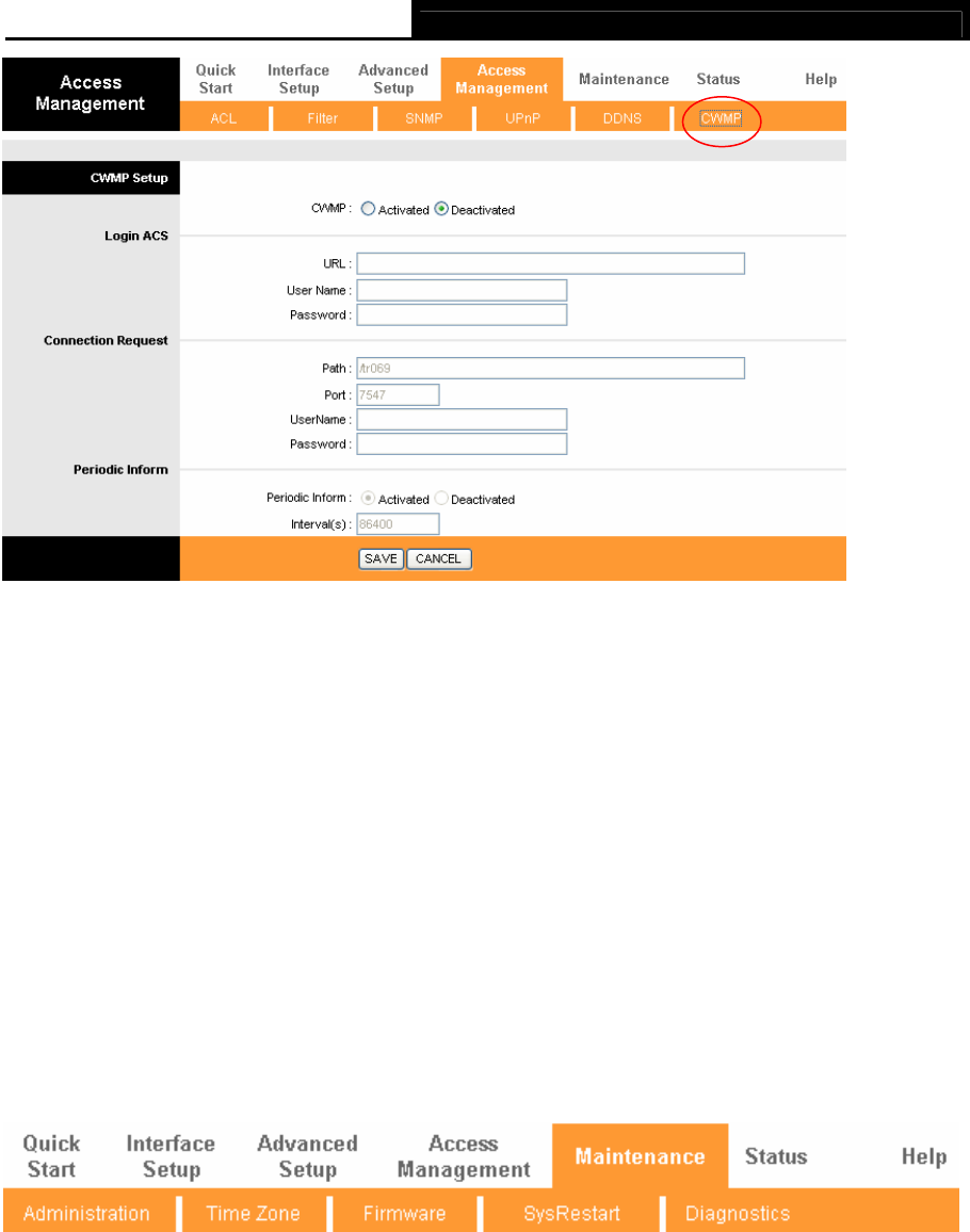 ¾ Periodic Inform: Activate or deactivate the function. If Activated, the information will be