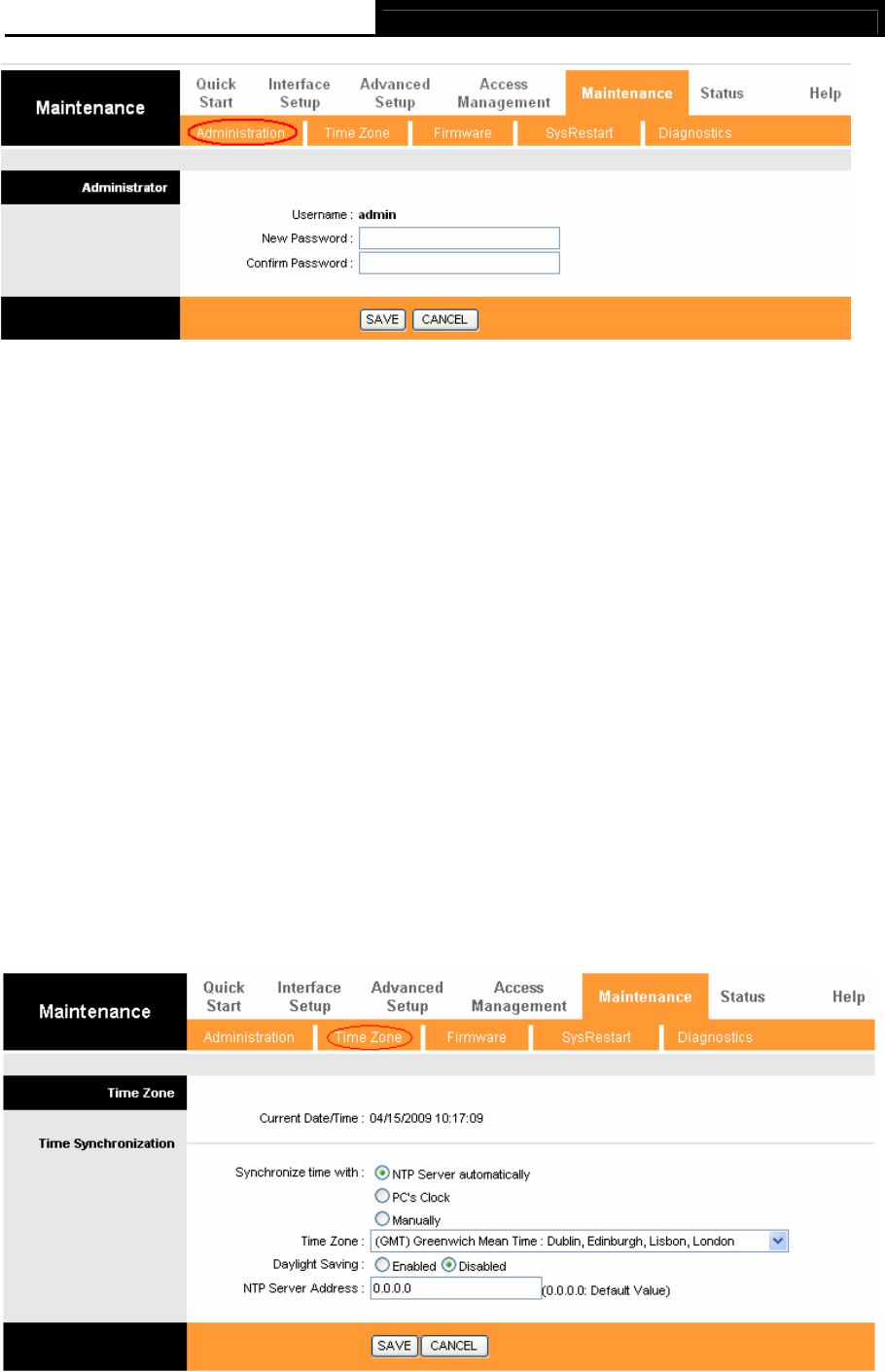 Choose “Maintenance→Time Zone”, you can configure the system time in the screen (shown in