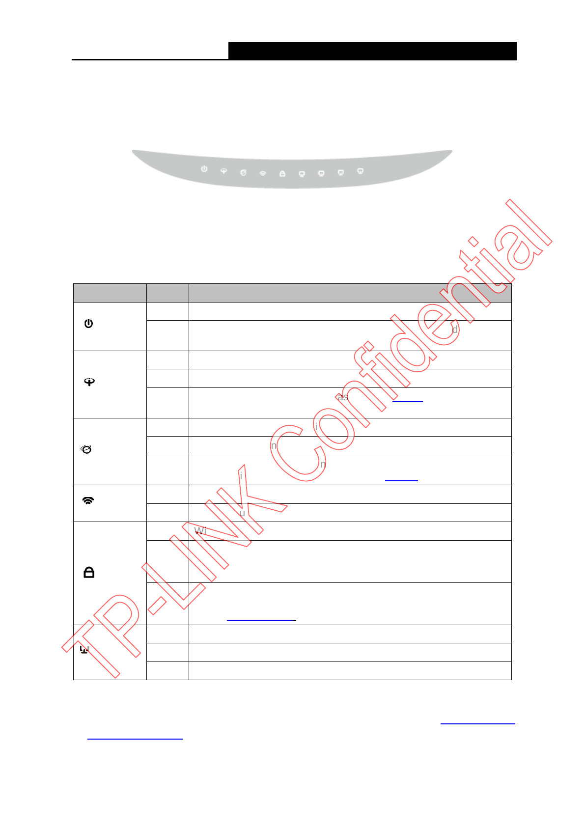 The LEDs locate on the front panel. They indicate the device’s working status. For details, please