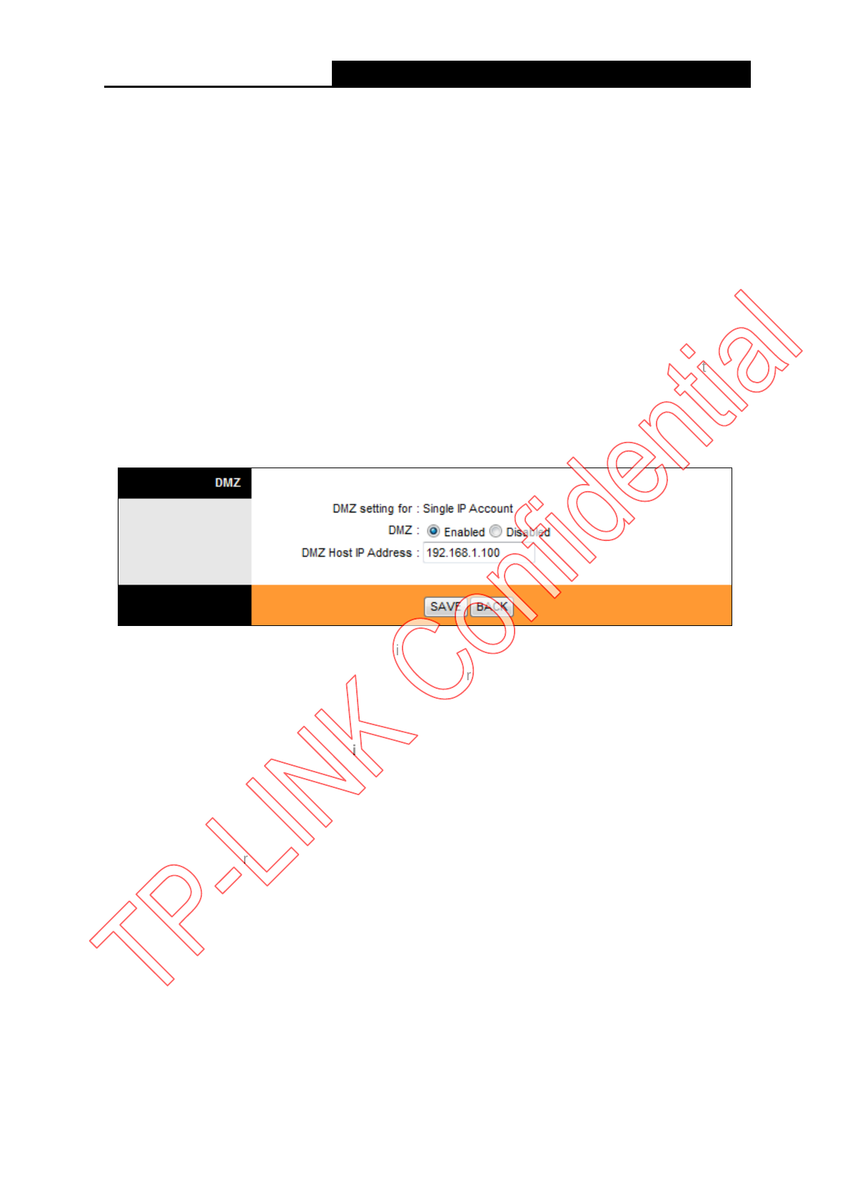 Choose “Advanced Setup→NAT→DMZ” in Figure 4-33, you can configure the DMZ host in the