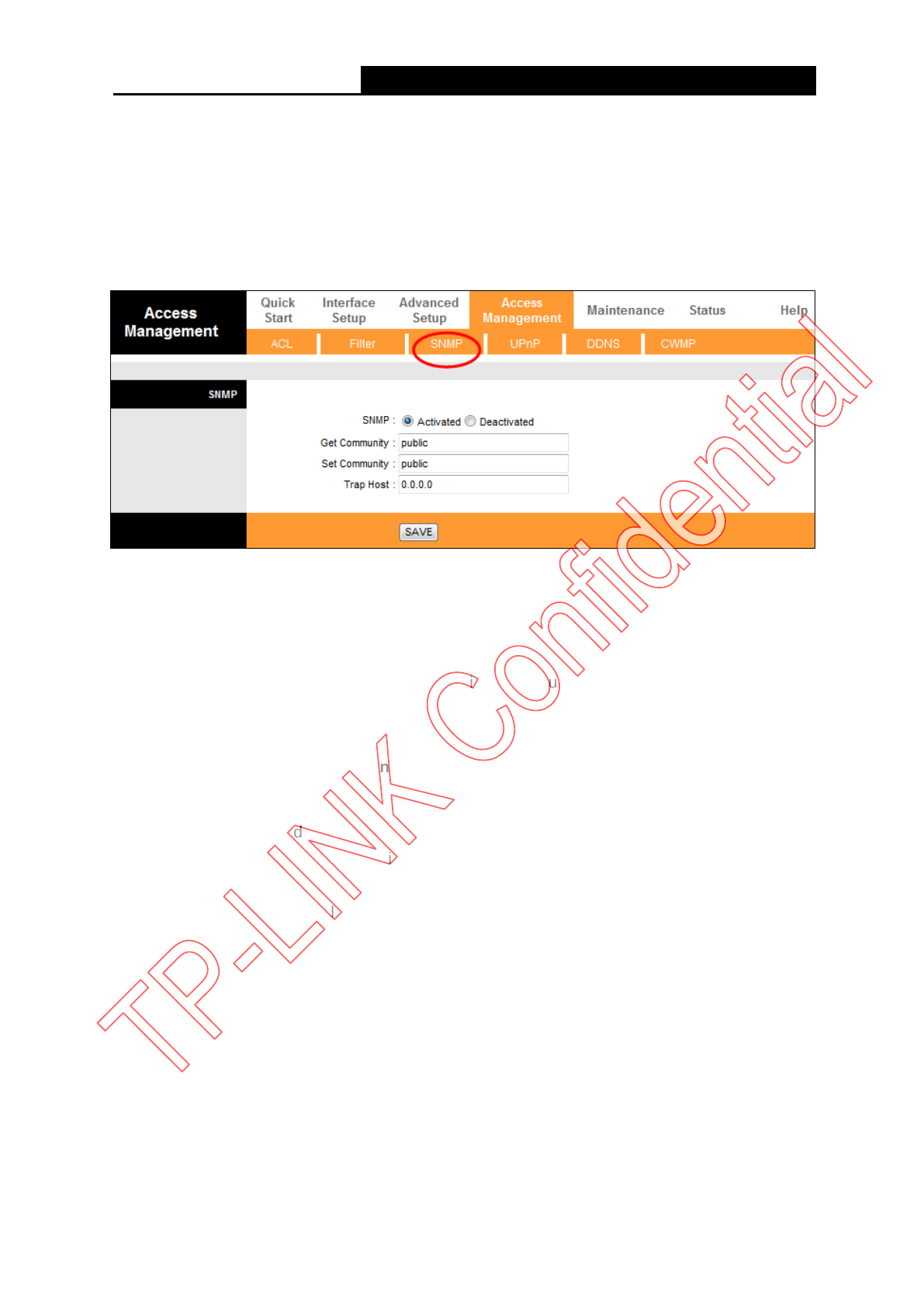 Choose “Access Management→SNMP”, you can see the SNMP screen. The Simple Network