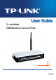 TL-WA500G 54M Wireless Access Point User Guide Overview of This Guide Package Contents: Tells what are contained in the box. Chapter 1 Introduction: Gives an introduction for the TL-WA500G Wireless Access Point. 1.1 Product Overview: Introduces advantages of using this AP. 1.2 Main Feature: Introduces main features and their benefits. 1.3 Appearance: Gives descriptions of LEDs, ports and buttons on the front and rear panel.