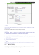 TL-WA7110ND 150Mbps High Power Wireless Access Point User Guide Description - The information of description include address range, the port range and protocol of transport layer. Egress Bandwidth - The max upload speed which through the WAN port. The default number is 0. Ingress Bandwidth - The max download speed which through the WAN port. The default number is 0. Enable - Rule status, which shows whether the rule takes effect. Modify - Choose to modify or delete an existing entry. 5.