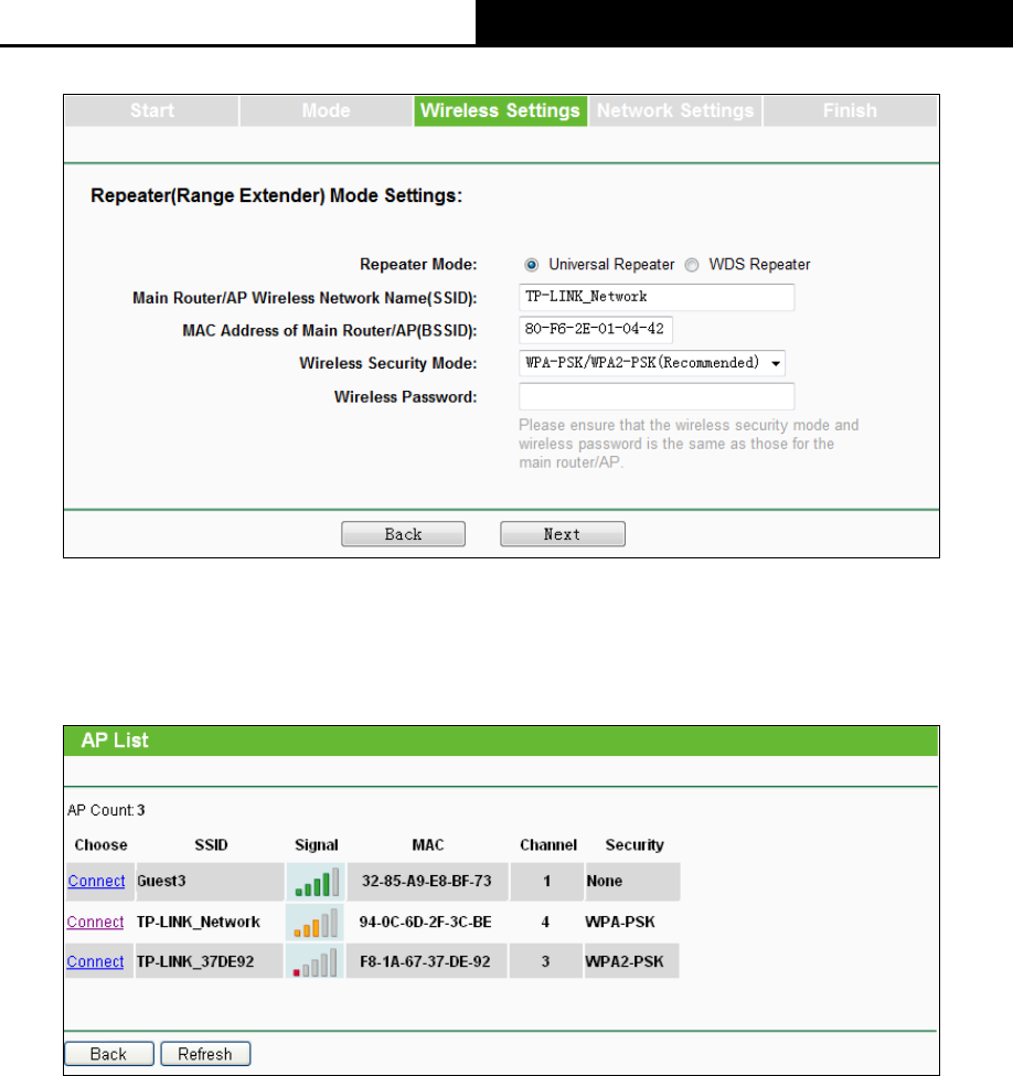 Figure 3-7 Wireless Setting – Repeater (Range Extender) mode