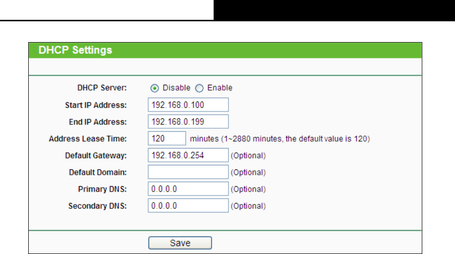 DHCP server on your AP. The default setting is Enable. If you disable the Server, you must