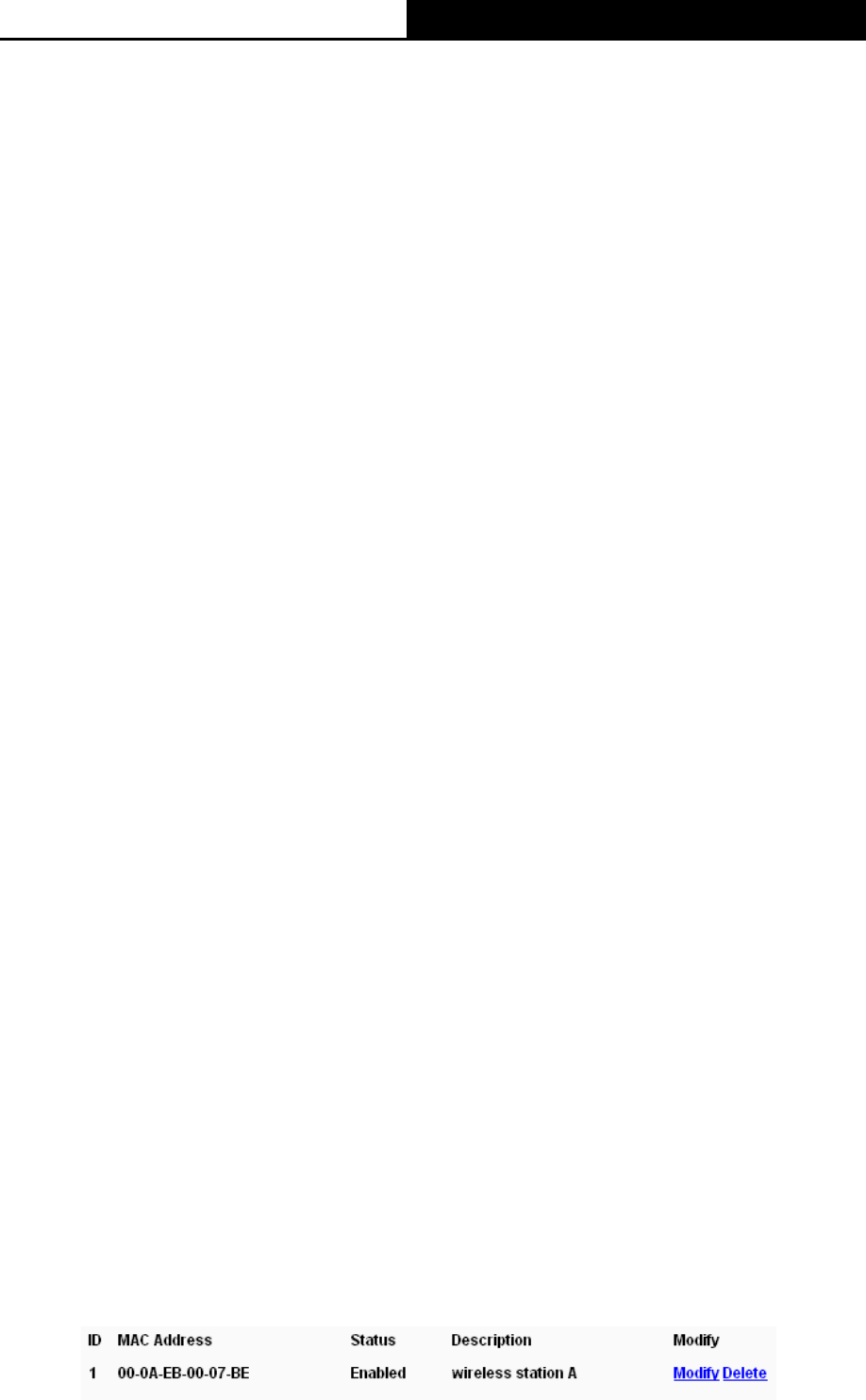 For example: If you desire that the wireless station A with MAC address 00-0A-EB-00- 07-BE is