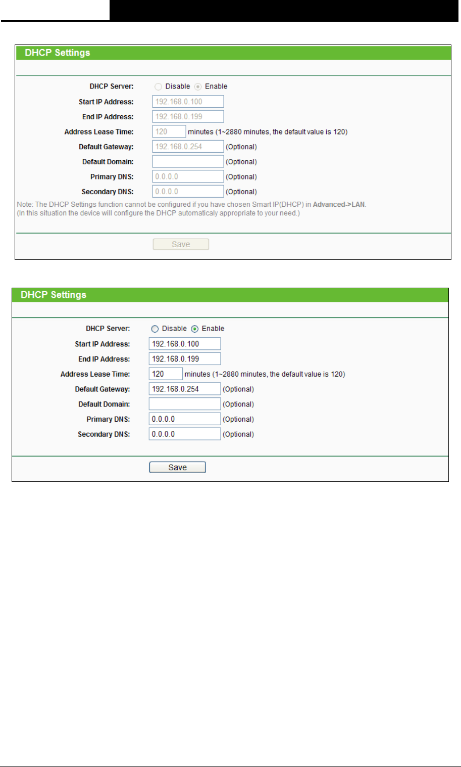Figure 4-11 DHCP Settings – Disabled
