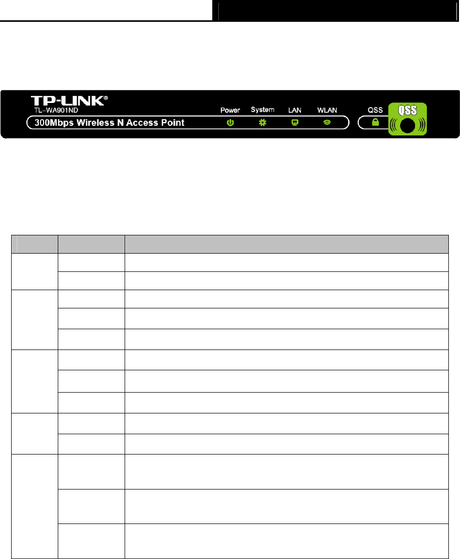 The front panel of the TL-WA901ND consists of several LED indicators, which is designed to