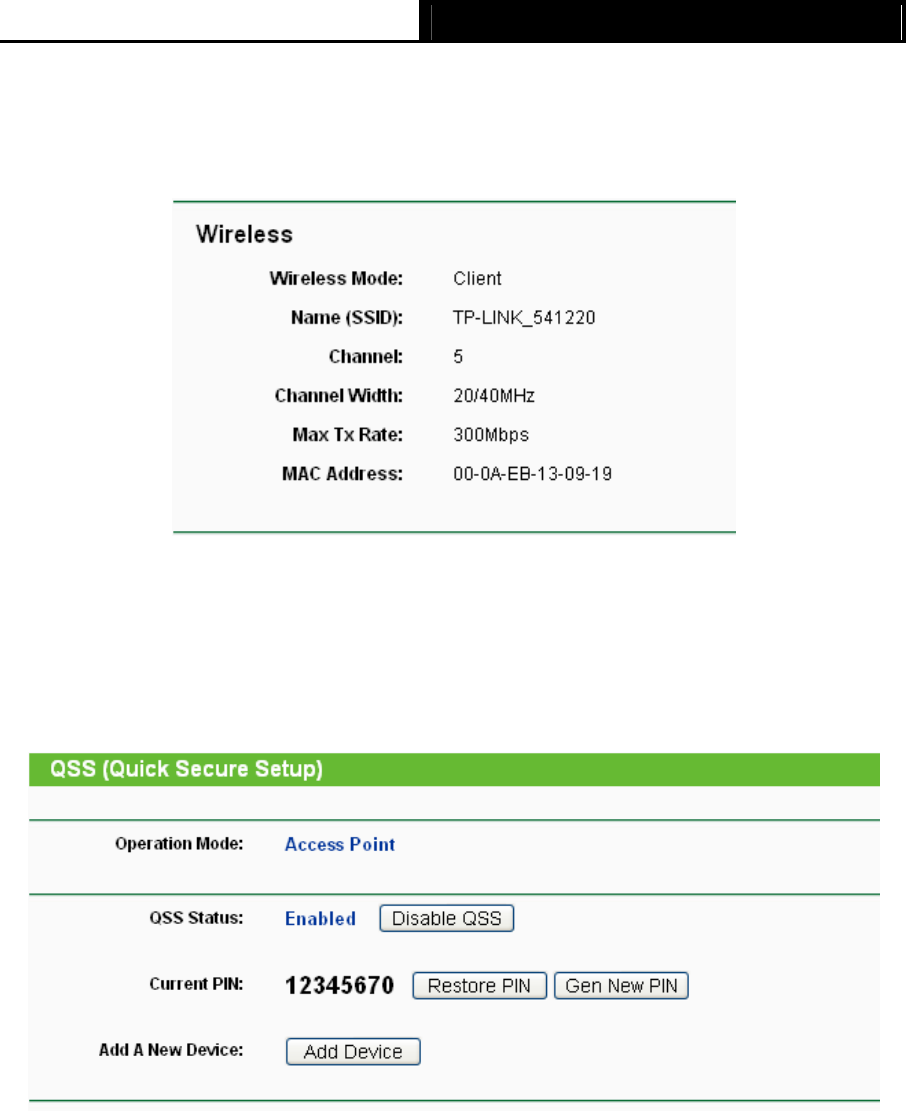 Here we take the Access Point mode for example. Select menu “QSS”, you will see the next