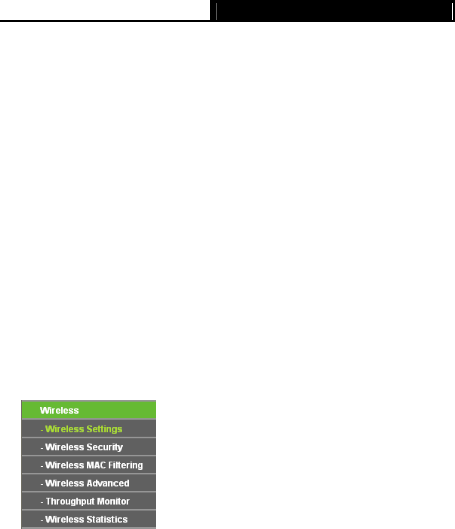There are six submenus under the Wireless menu (shown in Figure 4-7): Wireless Settings,