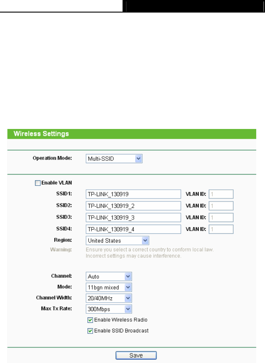 Figure 4-9 Wireless Settings in Multi-SSID mode