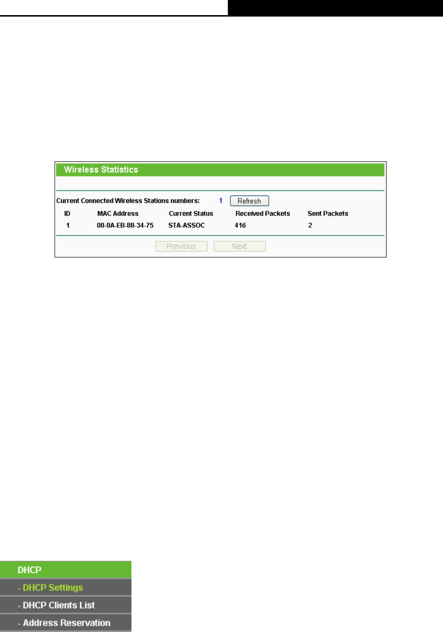 Choose menu “Wireless → Wireless Statistics”, you can see the MAC Address, Current Status,