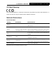 TL-WN350G/TL-WN350GD 54M Wireless PCI Adapter User Guide CE Mark Warning This is a class B product. In a domestic environment, this product may cause radio interference, in which case the user may be required to take adequate measures. National Restrictions 2400.0-2483.5 MHz Country Restriction Reason/remark General authorization required for outdoor use and Bulgaria public service France Outdoor use limited to 10 Military Radiolocation use. Refarming of the 2.4 GHz mW e.i.r.p.