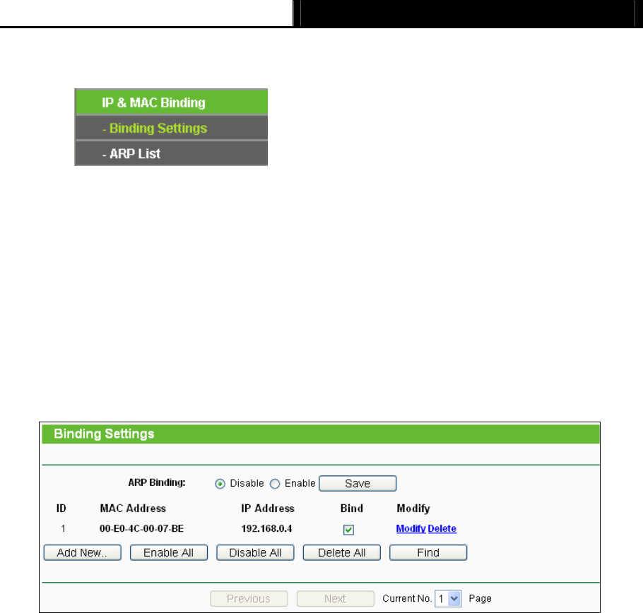 This page displays the IP & MAC Binding Setting table; you can operate it in accord with your