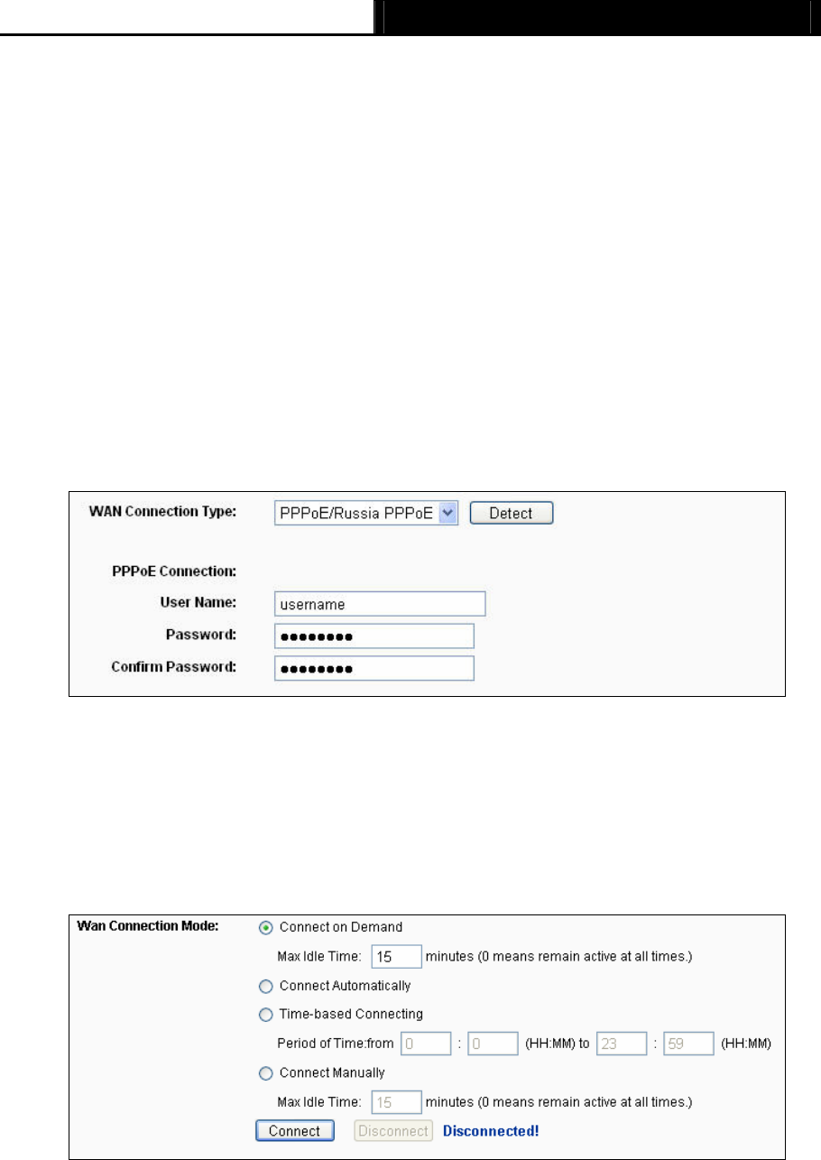 4) If your ADSL lease is in “pay-according-time” mode, select “Connect on Demand” or