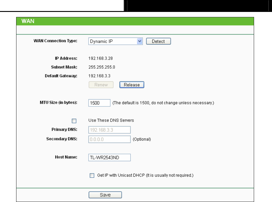 This page displays the WAN IP parameters assigned dynamically by your ISP, including IP