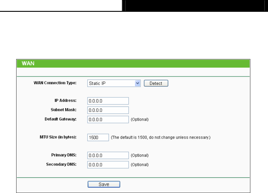 select Static IP. The Static IP settings page will appear, shown in Figure 4-7.