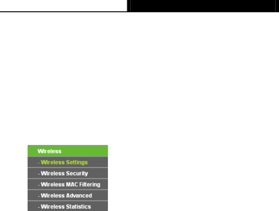 There are five submenus under the Wireless menu (shown in Figure 4-15): Wireless Settings,