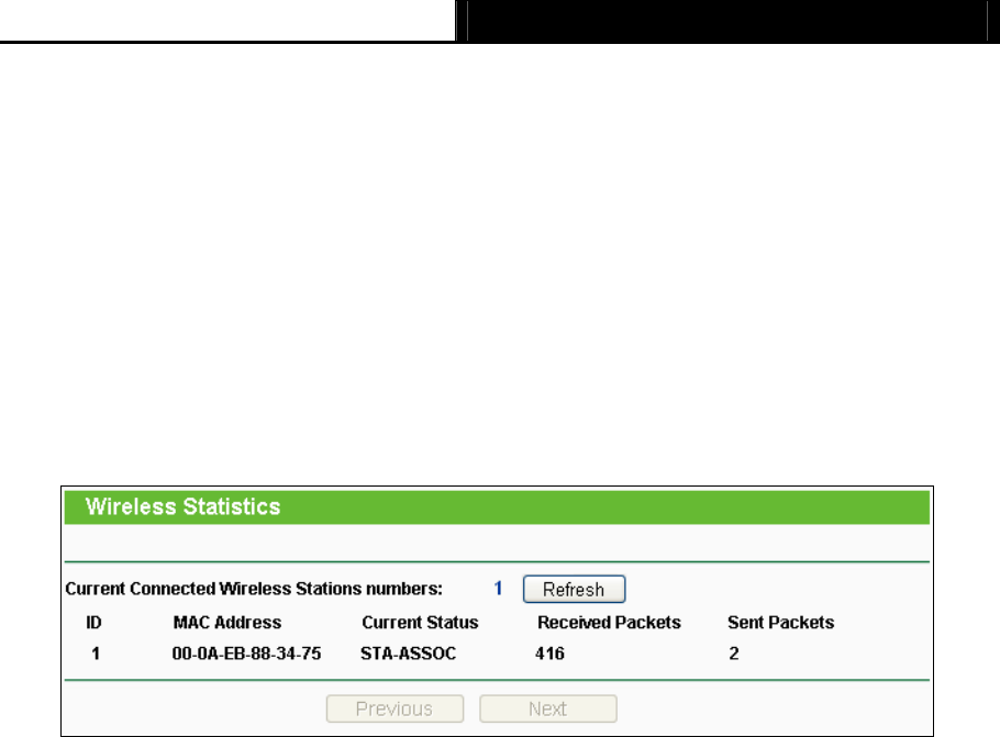 Choose menu “Wireless → Wireless Statistics”, you can see the MAC Address, Current Status,