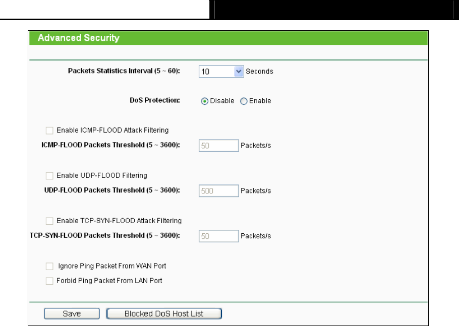 ¾ DoS Protection - Denial of Service protection. Check the Enable or Disable button to