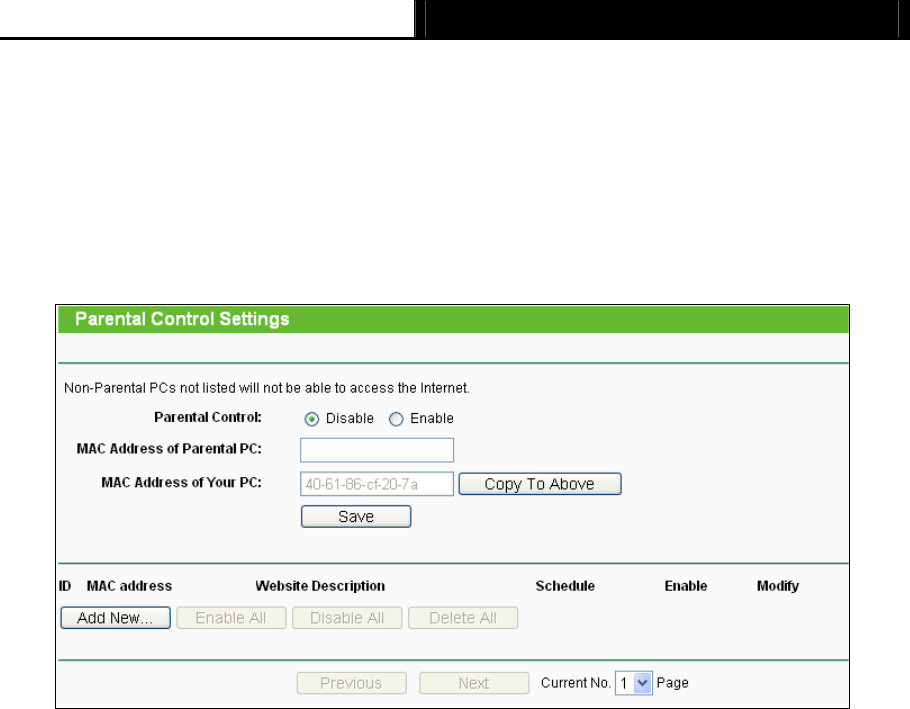 Choose menu “Parental Control”, and then you can configure the parental control in the screen