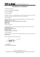 COPYRIGHT & TRADEMARKS Specifications are subject to change without notice. is a registered trademark of TP-LINK TECHNOLOGIES CO., LTD. Other brands and product names are trademarks or registered trademarks of their respective holders. No part of the specifications may be reproduced in any form or by any means or used to make any derivative such as translation, transformation, or adaptation without permission from TP-LINK TECHNOLOGIES CO., LTD. Copyright © 2009 TP-LINK TECHNOLOGIES CO., LTD.