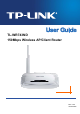 TL-WR743ND 150Mbps Wireless AP/Client Router Since the Router is compatible with virtually all the major operating systems, it is very easy to manage. Quick Setup Wizard is supported and detailed instructions are provided step by step in this user guide. Before installing the Router, please look through this guide to know all the Router’s functions. 1.2 Conventions The Router or TL-WR743ND mentioned in this guide stands for TL-WR743ND 150Mbps Wireless AP/Client Router without any explanation. 1.