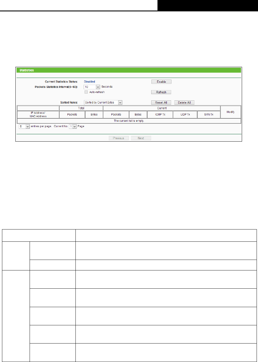 The Statistics page displays the network traffic of each PC in LAN, including total traffic and traffic
