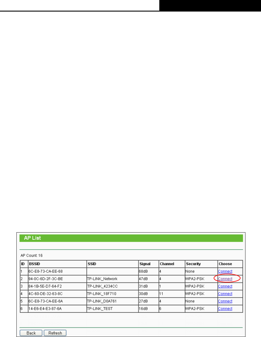 appear as shown in Figure 6-8. Find the SSID of the Access Point you want to access, and click