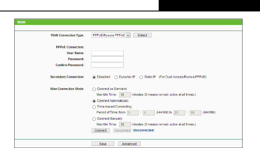 • Disabled - The Secondary Connection is disabled by default, so there is PPPoE