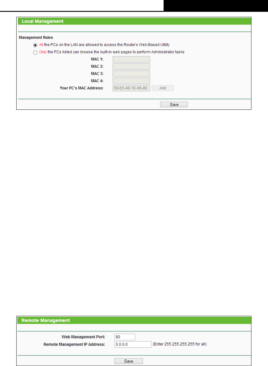 Web-Based Utility” is checked. If you want to allow PCs with specific MAC Addresses to access