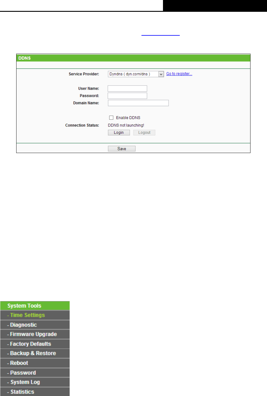 If the dynamic DNS Service Provider you select is www.dyn.com, the page will appear as shown
