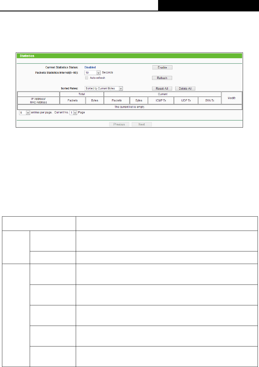 The Statistics page displays the network traffic of each PC in LAN, including total traffic and traffic