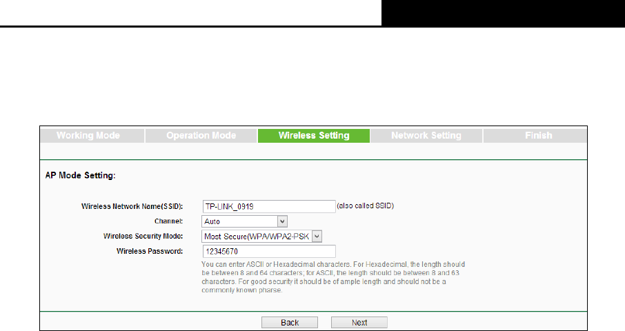 1. When you select Access Point mode in Figure 3-5 and click Next. Then the Wireless Setting