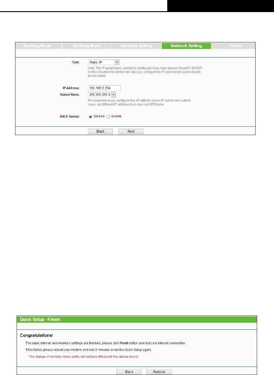 Figure 3-15 Quick Setup - Network Setting