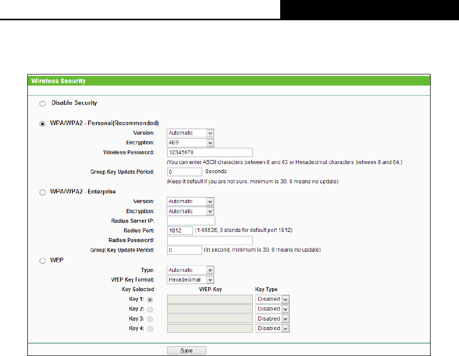 There are three wireless security modes supported by the Router: WPA/WPA2-Personal,