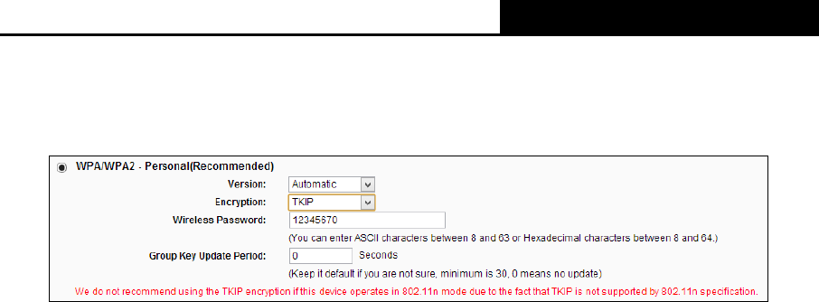 If you check the WPA-PSK/WPA2-PSK radio button and choose TKIP encryption, you will