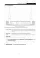 TL-WR841N/TL-WR841ND Wireless N Router 1.4.2 The Rear Panel Figure 1-2 Rear Panel sketch The following parts are located on the rear panel (View from left to right). ¾ Power socket: The Power socket is where you will connect the power adapter. Please use the power adapter provided with this TL-WR841N/TL-WR841ND Wireless N Router.