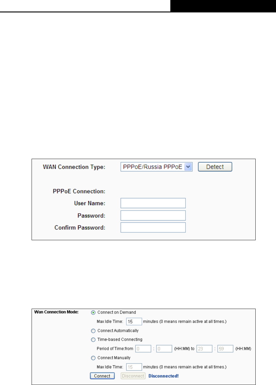 4) If your ADSL lease is in “pay-according-time” mode, select “Connect on Demand” or
