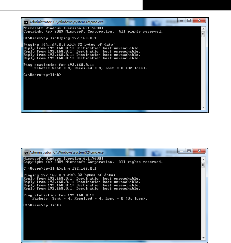 Figure 3-2 Failure result of Ping command