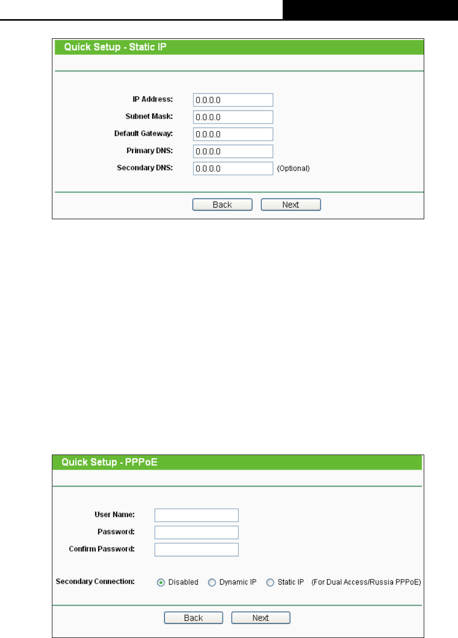 3) If the connection type is PPPoE/Russian PPPoE, the next screen will appear as shown
