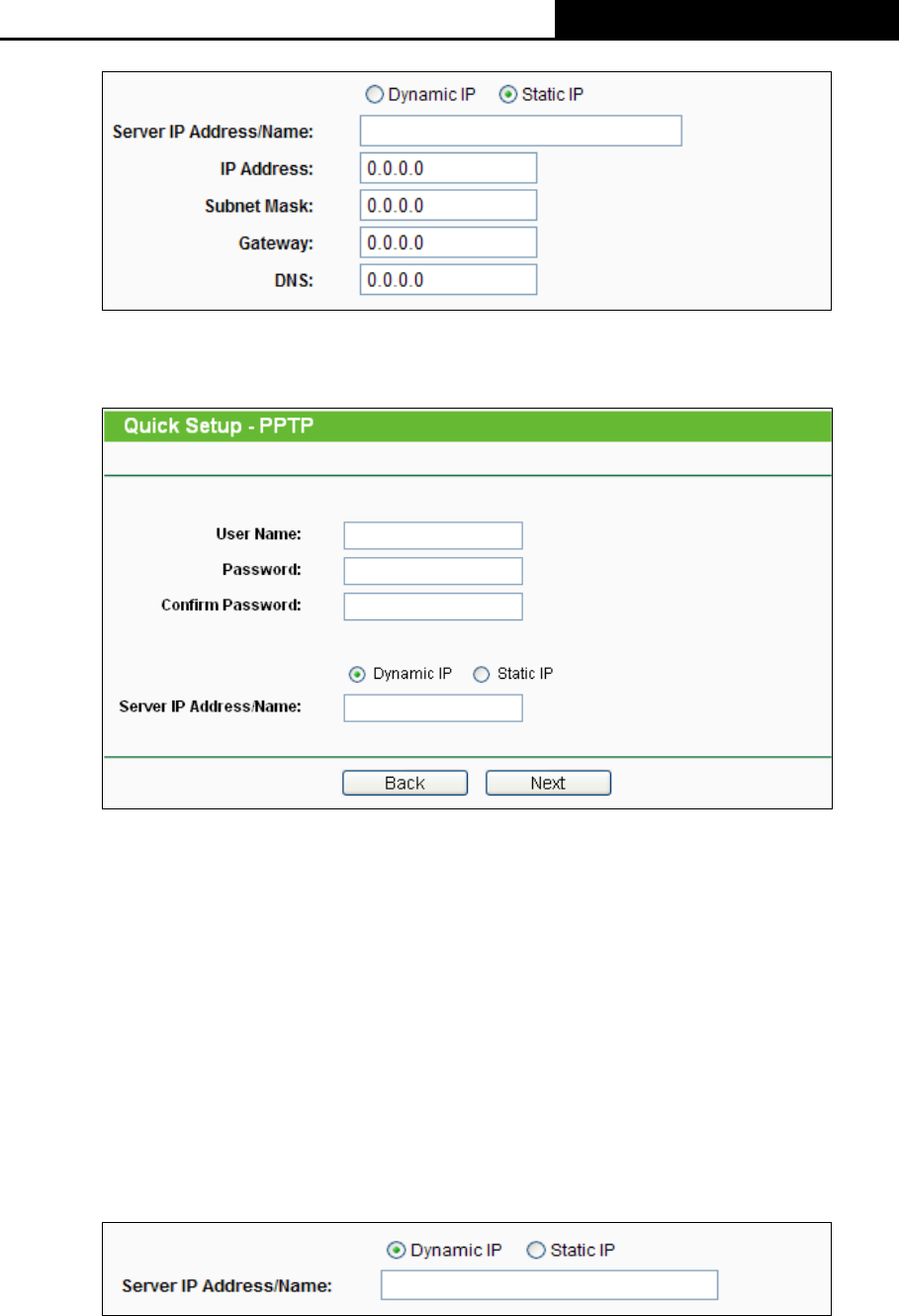 5) If the connection type is PPTP/Russian PPTP, the next screen will appear as shown in