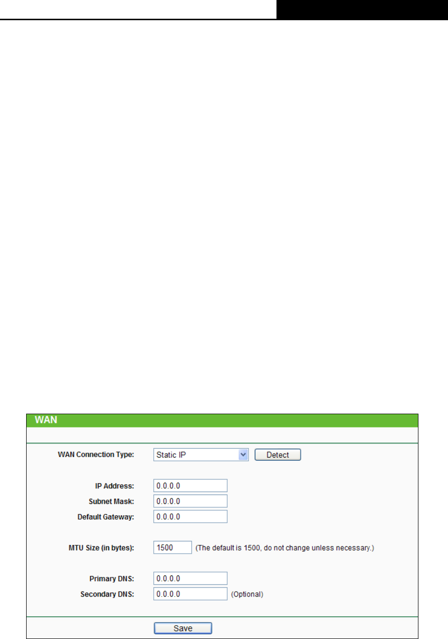 select Static IP. The Static IP settings page will appear, shown in Figure 4-7.
