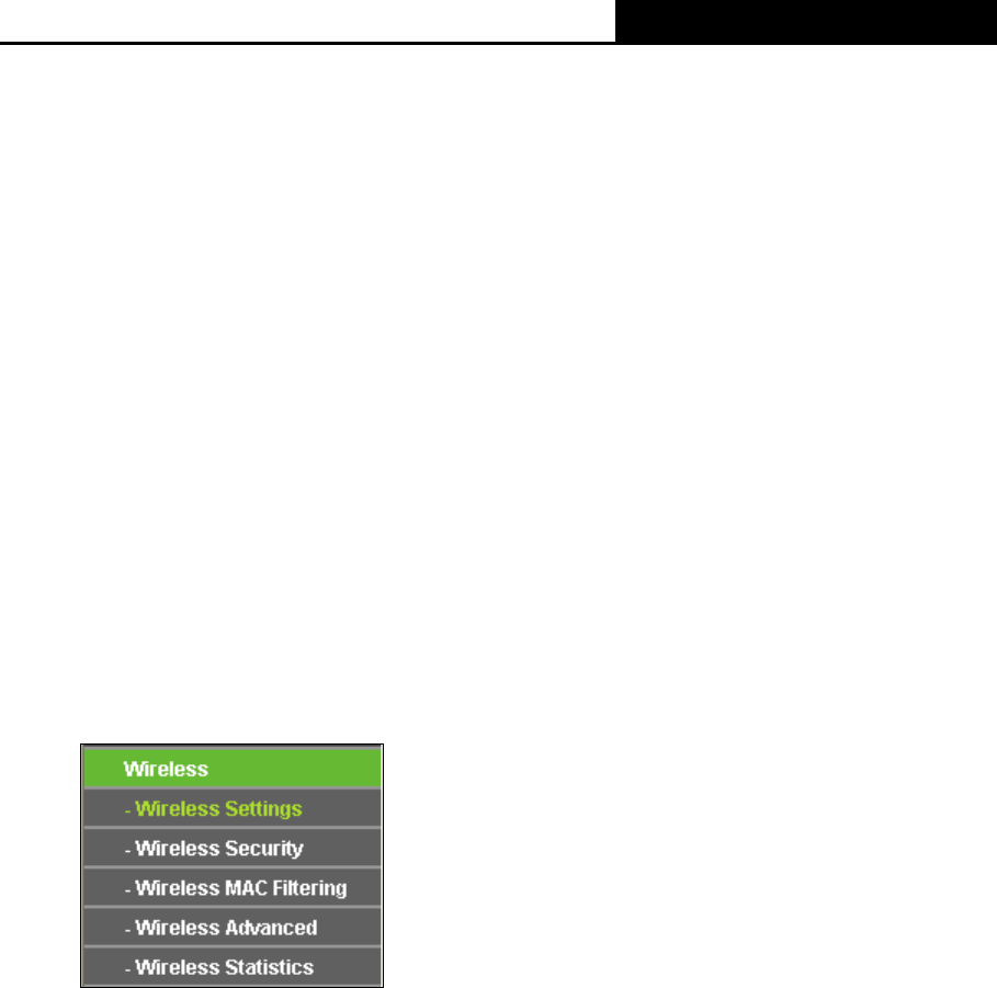 There are five submenus under the Wireless menu (shown in Figure 4-15): Wireless Settings,