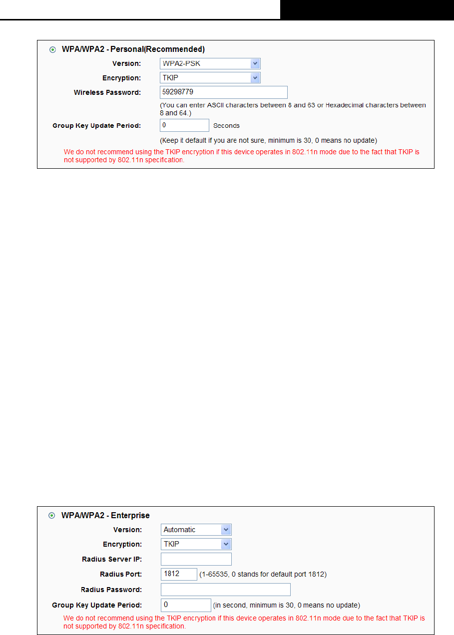 • Encryption - You can select either Automatic, or TKIP or AES.