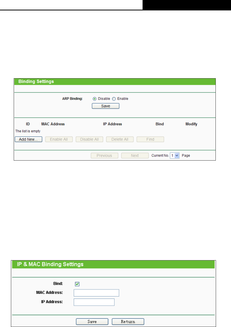 This page displays the IP & MAC Binding table; you can operate it in accord with your desire.